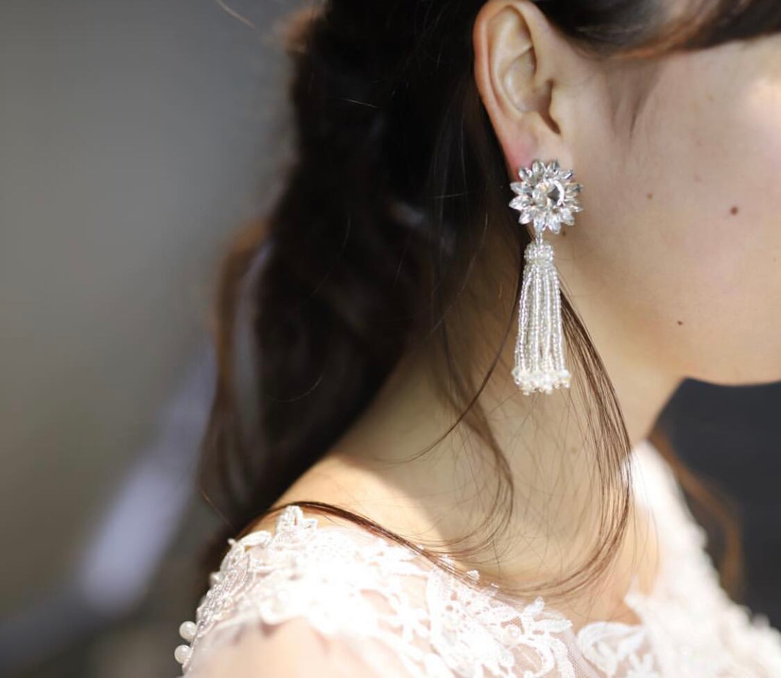透明感のあるお花のビジューと短めのタッセルを合わせました。