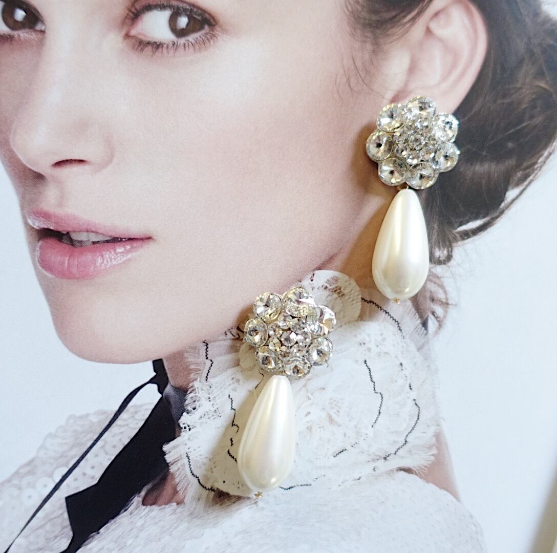 海外で買い付けたお花のビジューとパールを組み合わせたアクセサリー。