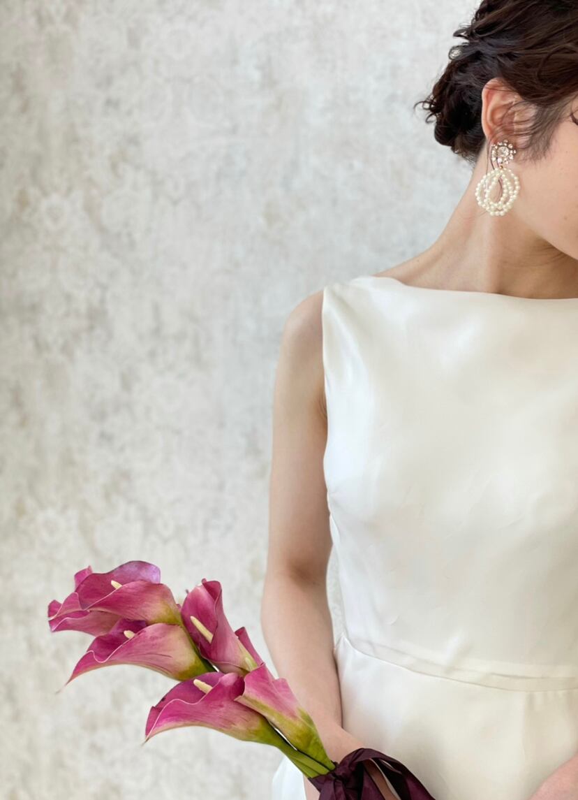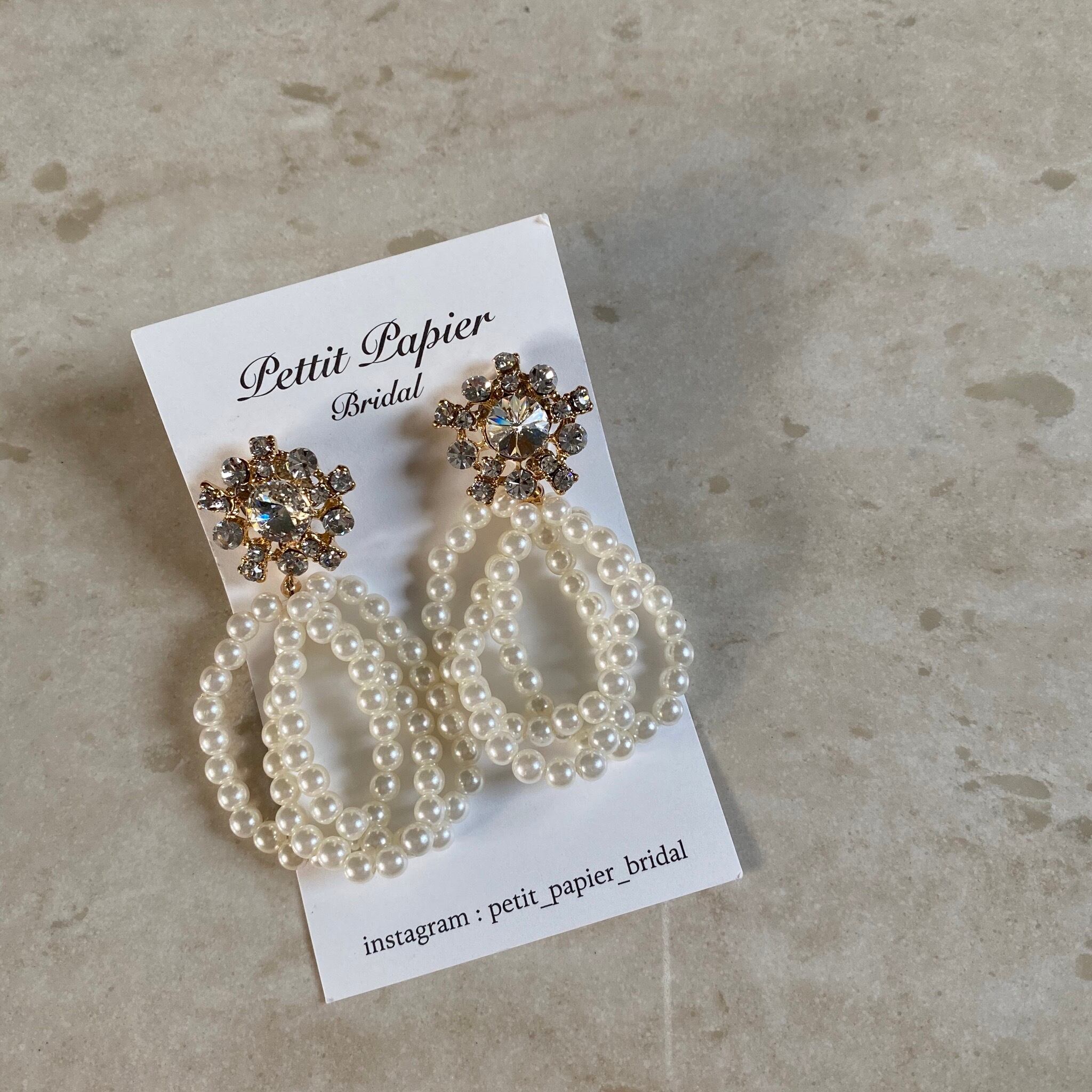 小さめのビジューですがパールと組み合わせることで肌馴染みのいい華やかな印象に。