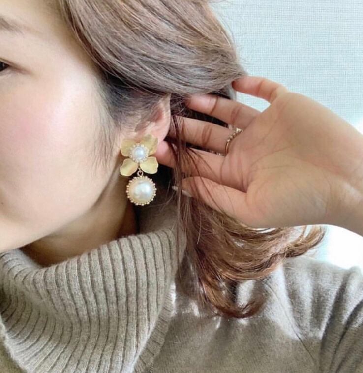 ゴールドのお花のビジューとパールが可憐なアクセサリーです。無くなり次第終了です。