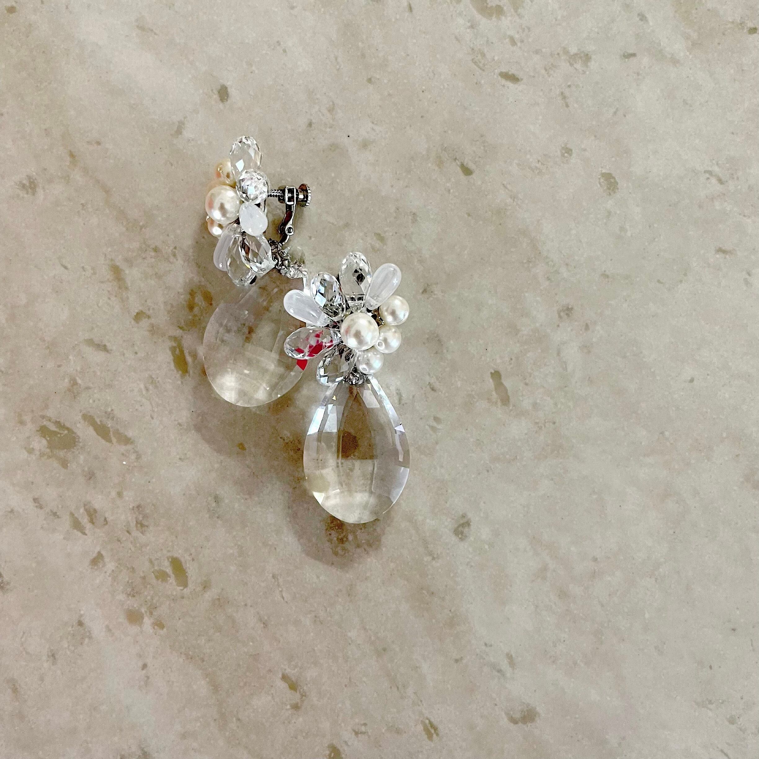ウィーンから届きましたスワロフスキーのクリアーパーツと大ぶりのお花のモチーフを合わせました。
